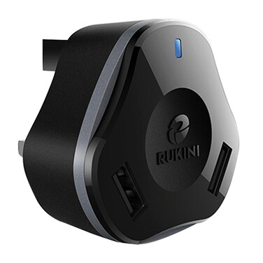 روكيني شاحن جداري بمنفذي USB ، مقبس بريطاني ، أسود