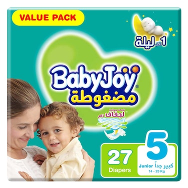 بايبي جوي حفاضات بفوطة ماسية مضغوطة مقاس 5 جونيور من 14-25 كلغ 27 حفاض