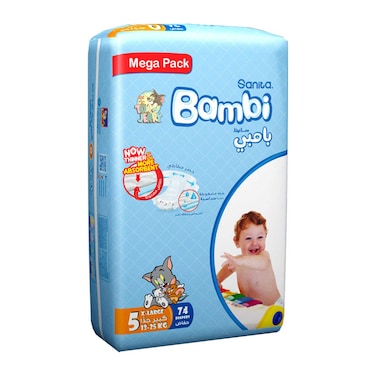 حفاضات سانيتا بامبي العبوة الضخمة - حجم 5- كبير جدًّا، 12-22 كيلو، 74 حفاض