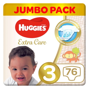 هاغييز إكسترا كير حفاضات مقاس 3 من 4-9 كلغ عبوة جامبو _أبيض_ 76 حفاض