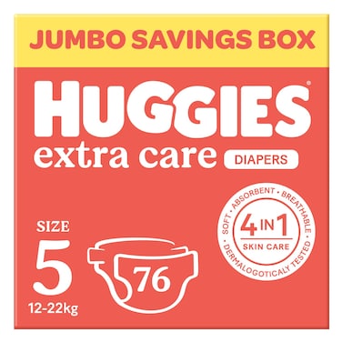 هجيز العناية الفائقة للأطفال، مقاس 5، وزن من 12 - 22 كج، صندوق جامبو تحتوي على 76 حفاضة