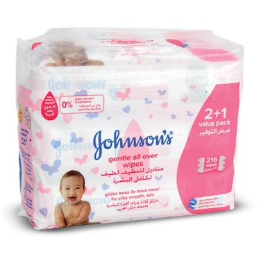 جونسون مناديل مبللة لتنظيف لطيف لكامل البشرة للأطفال، 72منديل (×2 +1)