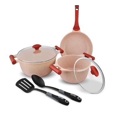 Riveted fittings for added strength and durability. Reinforced ridged anti-scratch interior for superior food release & easy cleaning. Smart glass lids look stylish and let you keep an eye on your food as it cooks. Thick 3D steel base. 3D stainless steel base resists warping and is suitable for all stoves including induction. Forged body provides strength and thickness where needed for optimal cooking performance. Reinforced ridged anti-scratch interior for superior food release and easy cleaning. 5 Layer Ridged Dura non-stick coating for low fat healthy cooking. Deep capacity with cold forged construction.