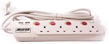 توصيلة كهربائية 4 افياش مع يو اس بي 3 متر لون ابيض