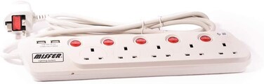 توصيلة كهربائية 5 افياش مع يو اس بي 3 متر لون ابيض
