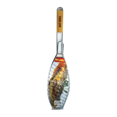 Stainless steel barbeque fish grill, this barbeque grill grates combines two grates for more grill area for ribs, steaks, kebabs and more mouth watering barbeque meals. The grill grates folds for space-saving storage and easy carry. Chromium plated wire mesh with non-stick teflon coating ensures rust-free and long life of this barbeque grill grates. Long wooden handle keeps hands away from the hot grill. Easy to clean and store.