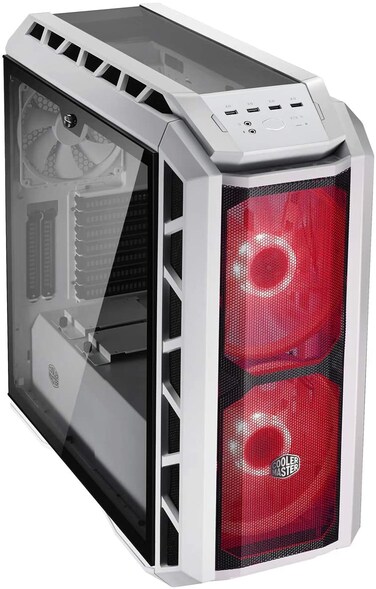 جهاز كمبيوتر ماستر كيس اتش 500 بي من كولر ماستر بشبكة لتدفق هواء قوي وبضوء ليد بفضاء لوني ار جي بي وزجاج مقوى جانبي باللون الابيض طراز MCM-H500P-WGNN-S00