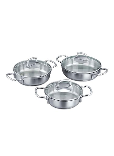 طقم أواني طهي مكون من 3 قطع مع أغطية باللون فضي
