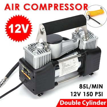 ضاغط هواء يونيفرسال مزدوج الأسطوانة 12 فولت 150 رطل لكل بوصة مربعة مع حقيبة للحمل