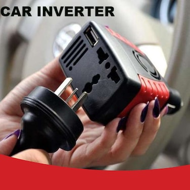 محول طاقة للسيارة من 12 فولت إلى 220 فولت تيار متردد أحمر وأسود