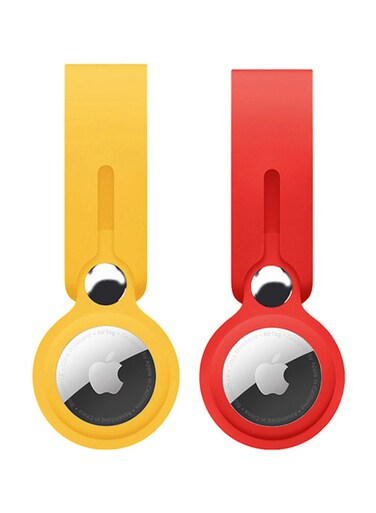 Fitme حافظات حماية طويلة من السيليكون لجهاز أبل آير تاج، قطعتين أحمر/أصفر