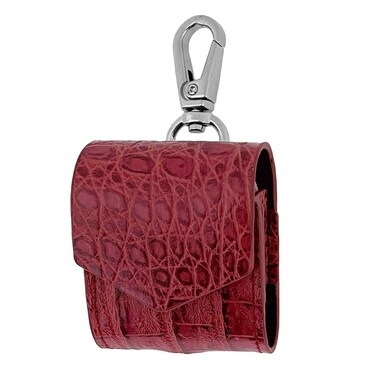 غطاء حماية ممتص للصدمات لسماعات ايربودز جلد مع حلقة أمان احمر