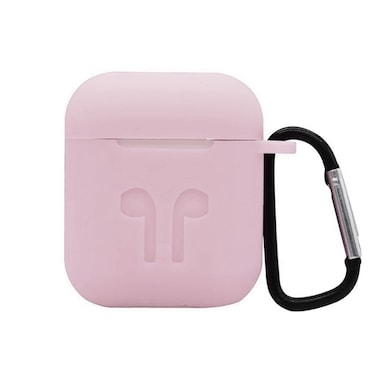 غطاء حماية ممتص للصدمات لسماعات ايربودز بلاستيك مع حلقة أمان زهري