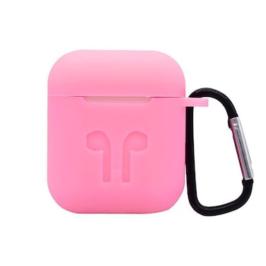 غطاء حماية ممتص للصدمات لسماعات ايربودز بلاستيك مع حلقة أمان زهري