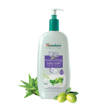 هيمالايا سائل الإستحمام المرطب للأطفال غني بالحليب والصبار إضافة إلى زيت الزيتون واللوز للمساعدة في الحفاظ على الرطوبة وتخفيف جفاف البشرة بعد الاستحمام ولترطيب بشرة طفلك 800مل