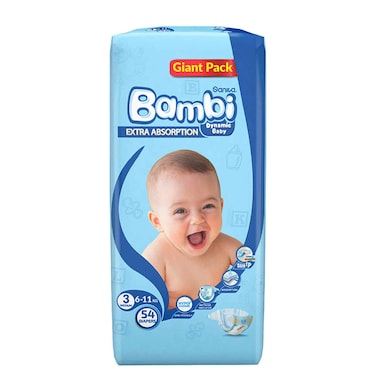 حفاضات سانيتا بامبي العبوة الكبرى - حجم 3، وسط،6-11 كيلو، 54 حفاض