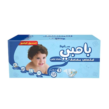 حفاضات سانيتا بامبي الصندوق الكبير - حجم 4+، كبير+، 10-18 كيلو، 88 حفاض