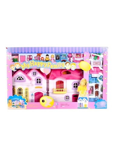 مجموعة لعب بيت الدمى السعيدة مع الدمى والاكسسوارات