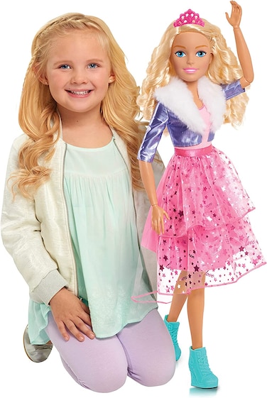 يبلغ طول دمية باربي 28 انش، ولها إطلالة الأميرة العصرية.