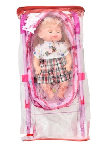 دمية بيبي مع مجموعة ألعاب عربة متينة وقوية للبنات