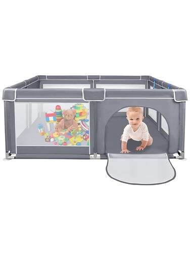 روضة الأطفال سكاي تاتش 200x200 سم، ساحة لعب كبيرة جدًا للأطفال الرضع، مركز لعب آمن مع شبكة قابلة للتنفس وباب بسحاب والأطفال الصغار يمنح الأم استراحة، رمادي