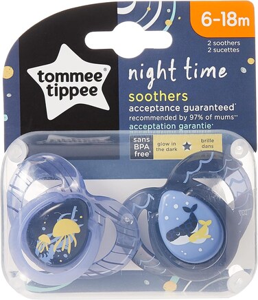 مجموعة لهايات أطفال من تومي بيبي بنمط الدرع التقليدي مع مقبض لامع، مما يسهل العثور عليه في الظلام. مزينة بطبعة تعبر عن النوم والليل. تعلم الأمهات أنه لا يوجد شيء أكثر روعة من الطفل الهادئ، لذا طورت تومي تيبي مجموعة جديدة من اللهايات التي يحبها ويتقبلها الأطفال. تم تصميم الحلمة متماثلة التصميم لتقويم الأسنان خصيصاً للمساعدة في تحسين قبول الطفل لها، وفي الاختبارات المستقلة، تقبل الكثير من الأطفال هذه اللهايات الجديدة لأول مرة. تم تصنيعها من السيليكون الطبي الملائم للاستخدام الغذائي لتكوين منتجاً ناعماً وآمناً للاستخدام. تعزز نمو الفم والفك بطريقة صحيحة. خالية من بيسفينول A.