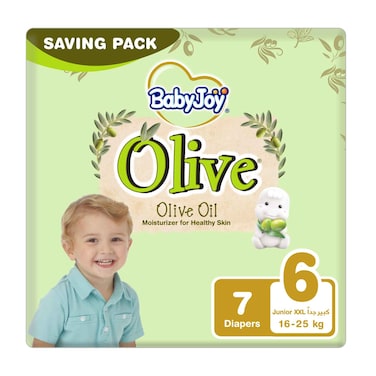 بيبي جوي حفائض بزيت الزيتون 6 حجم كبير جداً (16 - 25 كيلوجرام) ×7 حفاض