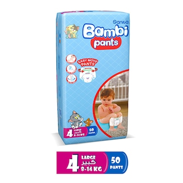حفاضات سانيتا بامبي بانتس العبوة العملاقة - حجم 4، اكبير، 8-14 كيلو، 50 حفاض