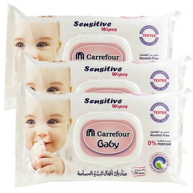 كارفور مناديل للأطفال خالية من الكحول معطرة 56 × 3