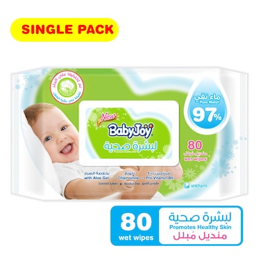 بيبي جوي مناديل مببلة بخلاصة الصبار والبابونج و فيتامين B5 97% ماء نقي × 80