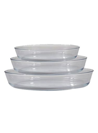 طقم صواني خبز زجاجية بيضاوية الشكل من البوروسليكات مكون من 3 قطع شفاف 1x1.6, 1x2.4, 1x3لارج