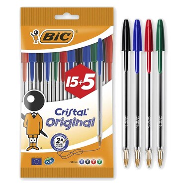 قلم حبر جاف أصلي من BiC Cristal، 20 قلمًا