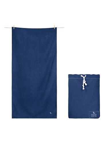 دوك اند بي منشفة حمام قماش الوافل للمنزل، سريعة الجفاف و فائقة الامتصاص، معاد تدويرها بنسبة 100%، منشفة استحمام حجم كبير اكسترا (180 × 90 سم) - ازرق غامق