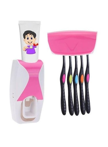 موزع معجون أسنان أوتوماتيكي ابيض/وردي