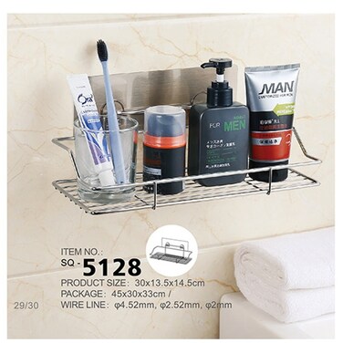 سلة أدوات الإستحمام المعدنية اللاصقة
