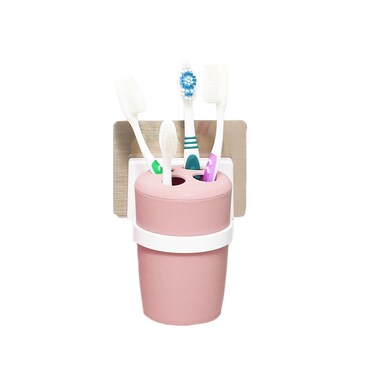 حامل فرشاة الأسنان لاصق حائط, زهري وابيض