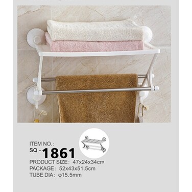 يتميز بتصميمه الأنيق وبساطته,يتسع لحمل أكثر من منشفه,يقاوم البناء المطلي بالكروم التآكل ويضمن عمر خدمة أطول,يبقي مناشف اليد والحمام بسهولة في متناول اليد