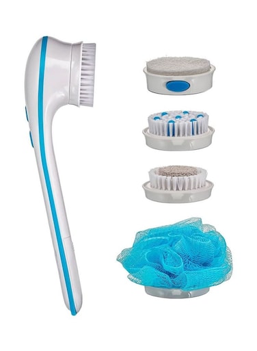 طقم فرشاة استحمام 5 في 1 أبيض/أزرق