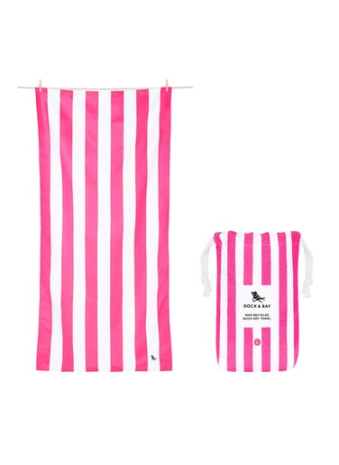 دوك اند بي منشفة شاطئ، مايكروفايبر فائقة الامتصاص، سريعة الجفاف وخفيفة الوزن، مقاومة للرمل، مصنوعة من مواد معاد تدويرها بنسبة 100%، مع حقيبة - حجم كبيرة (160 × 90 سم) - زهري مخطط