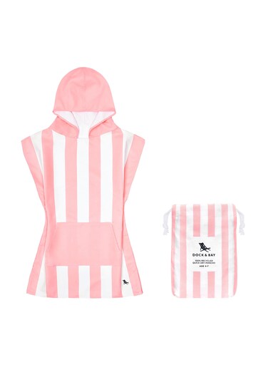 دوك اند باي بونشو منشفة شاطئ للاطفال، روب بحر بغطاء رأس فائقة الامتصاص وسريعة الجفاف وخفيفة الوزن، للأعمار من 4 الى 7 سنوات - زهري فاتح مخطط