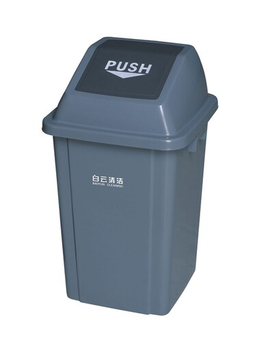 سلة نفايات من البلاستيك بغطاء رمادي/أسود
