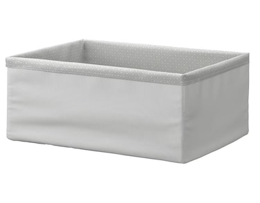 The fabric is made of recycled polyester. Using waste as a resource takes us one step closer to a more sustainable future. The inner side of the fabric has a decorative pattern that makes your drawer feel extra nice every time you open it. The pattern and expression fit perfectly with furniture in the HAUGA and IDANÄS series, but of course you can use it in any piece of furniture you like in order to organise and structure your things. The size suits slightly deeper drawers and is perfect for storing t-shirts, sweaters and hand towels. Easy to machine wash – just remember to remove the inserts hidden under the fabric. Approved for use in bathrooms, just like all the other organisers in the BAXNA series. You save space and it’s easier to find what you need when everything is organised.