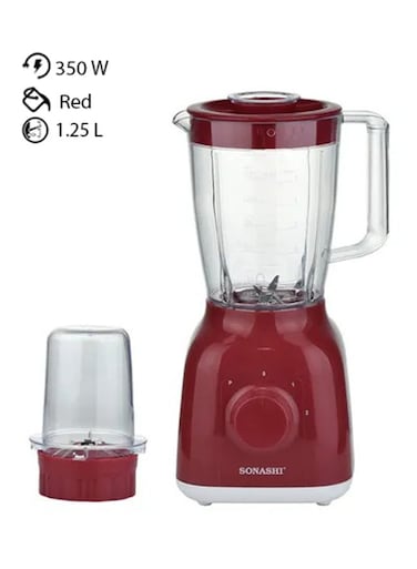 خلاط سوناشي 2 في 1 مع وعاء غير قابل للكسر، 1.25 لتر، 350.0 واط، SB-144N، أحمر