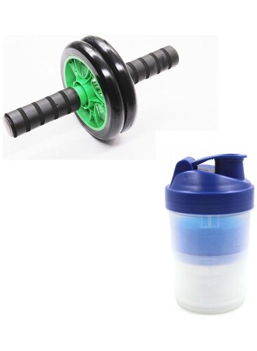 عجلة دوارة لتمارين البطن مع بساط للركبة وزجاجة مزج البروتين 35 x 20 x 10سم