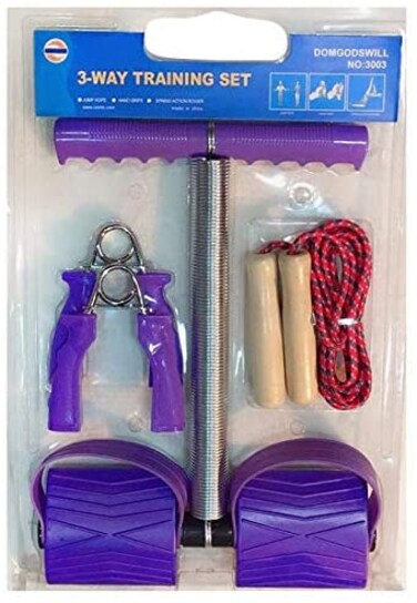 طقم معدات التدريب ثري واي من السوستة الرياضية وحبل القفز ومقابض يدوية، ارجواني