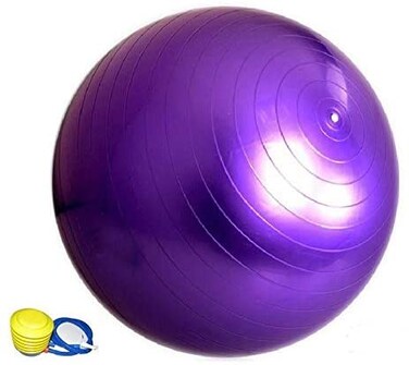 كرة مصنوعة من المطاط السويسري بمقاس 65 سم ملائمة للاستخدام من قبل الحوامل ولممارسة تمارين فقدان الوزن واليوجا بلون أرجواني وتتضمن مضخة الهواء