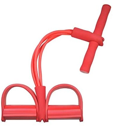 حبال - حبال - 4 أنابيب مطاطية للقدم قابلة للسحب ومتعددة الاستخدامات مصنوعة من المطاط ومزودة بدواسة تمارين رياضية لتمارين اللياقة البدنية (1 قطعة حمراء)