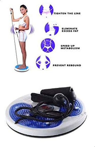 قرص دوار للخصر مع حزام توازن اليد - أبيض/أزرق