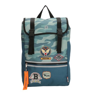 حقيبة الظهر تدور بالكامل حول موضوع الطائرات والجيش. تحتوي حقيبة الظهر على جيب أمامي بسحاب مثالي لوضع مفتاح الدراجة بداخلها، على سبيل المثال. يتم إغلاق الحجرة الرئيسية بواسطة قفلين سريعين ورباط بحيث يتم تخزين صندوق الغداء أو الحرف اليدوية أو معدات السباحة بشكل جيد. من السهل تعديل أحزمة الكتف الخاصة بالحقيبة.