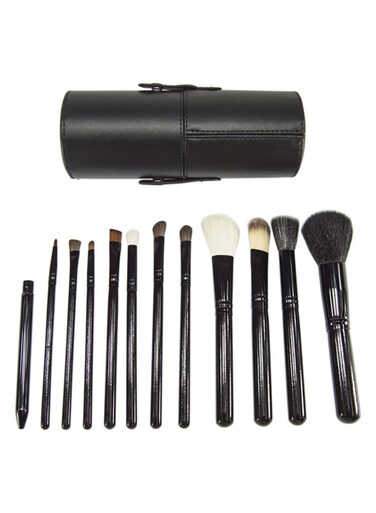 طقم من 12 فرشاة مكياج احترافية مع حامل على شكل كوب أسود - 12-Piece Professional Makeup Brush Set With Cup Holder Black